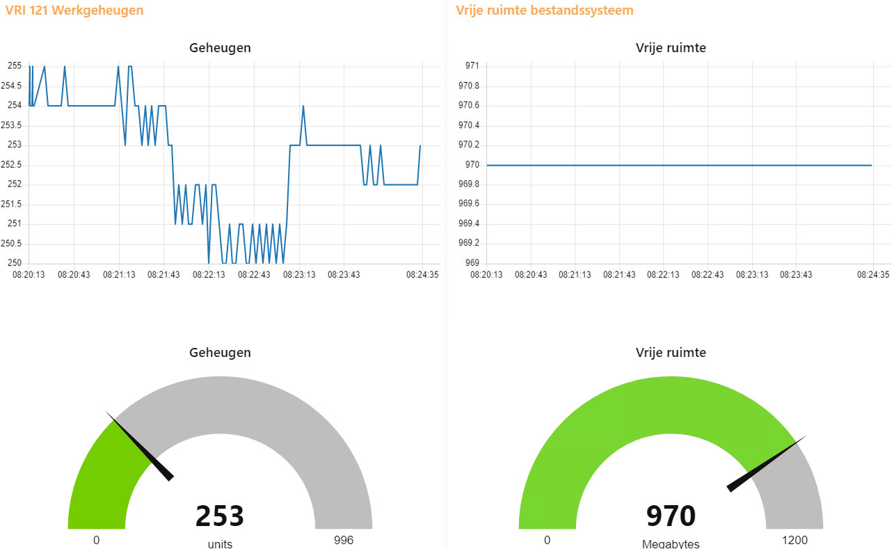 Data die op dit moment niet realtime beschikbaar zijn: Processortemperatuur, vrije ruimte van bestandssysteem, opgenomen vermogen van de verkeerslichten.